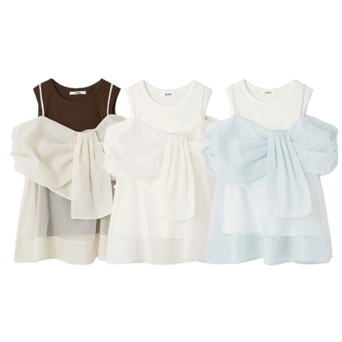 リボンライクなデザインが愛らしいブラウスセットノースリカットソー🎀✨
