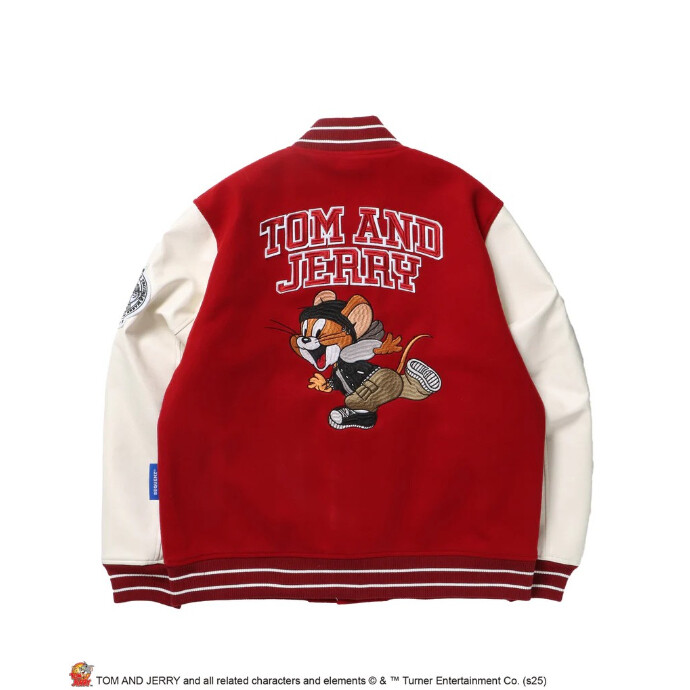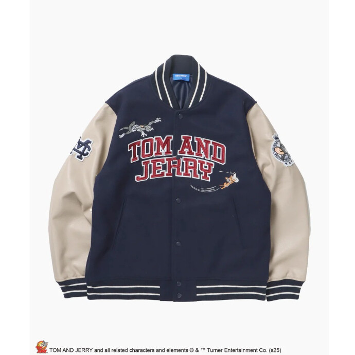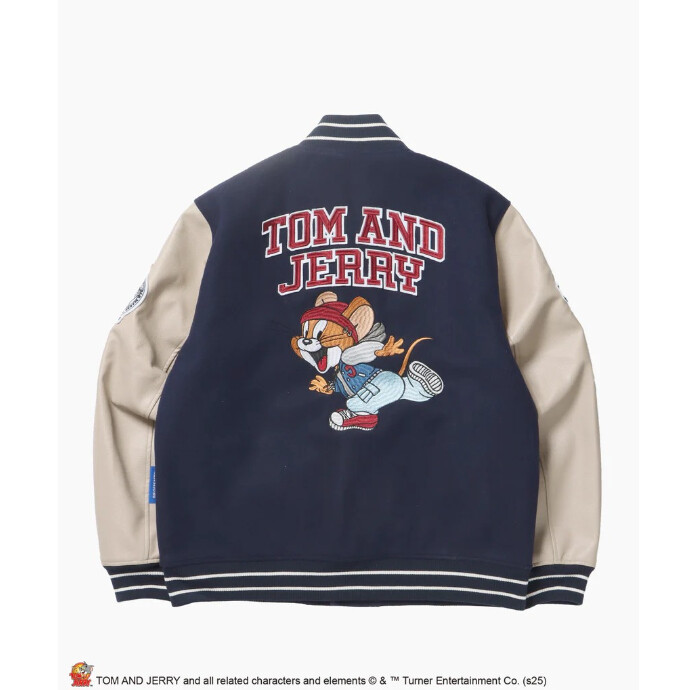袖部分にフェイクレザーの切り替えのデザインを採用し