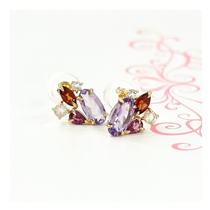 彩りカラフルなマルチストーンネックレス&ピアス ネックレス:K10/AM/RGA/RQZ/GA 税込¥42,900 ピアス:K10/AM/RGA/RQZ/GA 税込¥36,300 キャナルシティオーパB1F 青い鳥