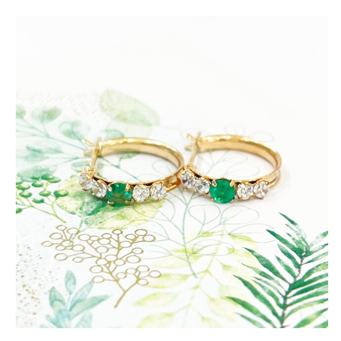 エメラルドの鮮やかな緑が引き立つ、フープピアス。 K10/エメラルド&キュービック ¥33,000(税込) キャナルシティオーパB1F 青い鳥