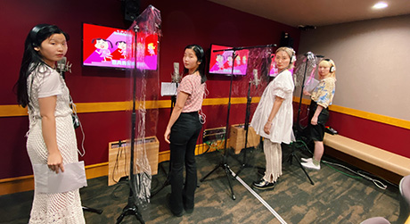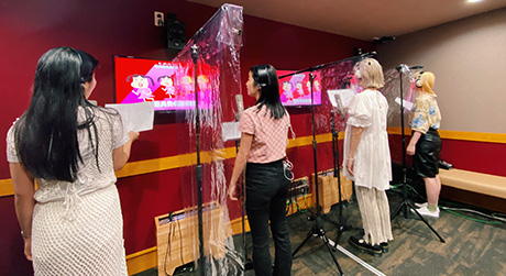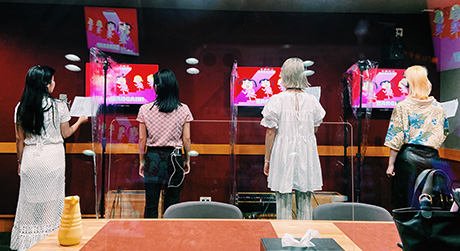 ご本人たちもお気に入りのイラストキャラに、息ピッタリの様子でアテレコしていきます。