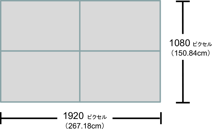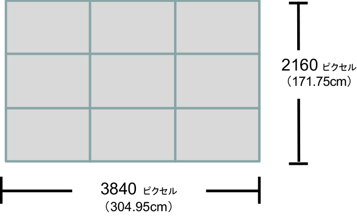 | 画面サイズ | ①大きさ 267.18cm×150.84cm (解像度W1,920ピクセル×H1,080ピクセル) ②大きさ304.95cm×171.75cm (解像度W3,840ピクセル×H2,160ピクセル) |