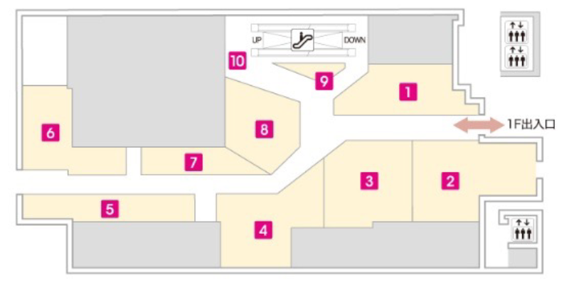 フェミニン系のブランドが多いフロアとなり、スターバックスコーヒーがあります。昇りのエスカレーターからお店が見え、フィッティングとして使用可能なスペースがあります。