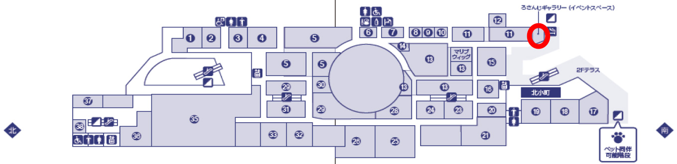 | ⑥ | 2F | ろさんじギャラリー | 約49.3 | 水曜から火曜までの7日間(準備・撤去も含む) 70,000円 | |