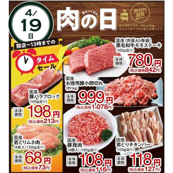 地下1階のスーパーマーケット「フードウェイ」の肉の日。