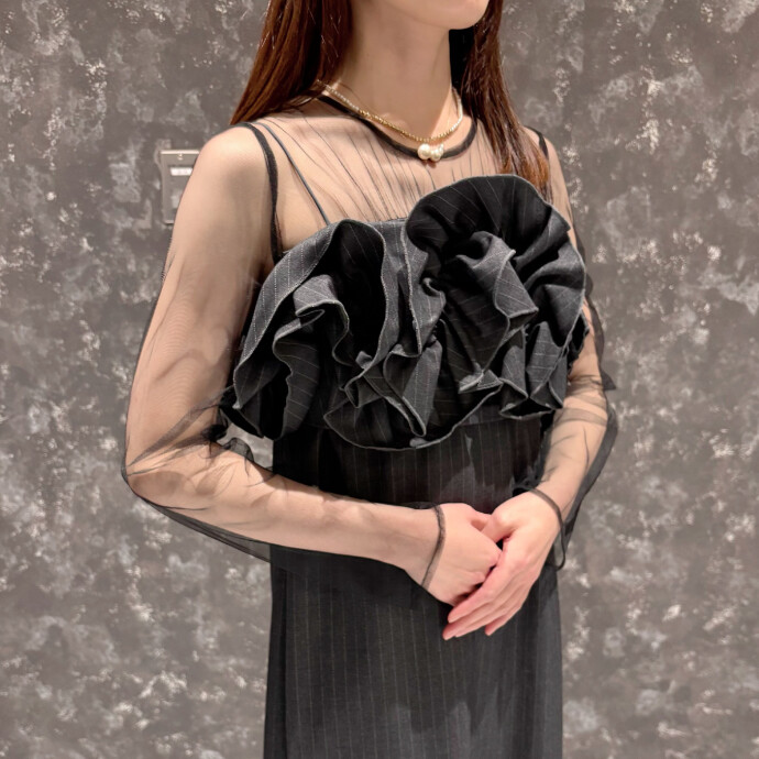 トレンド感あるウェーブフリルがあしらわれたビスチェ付きドレス🦋**