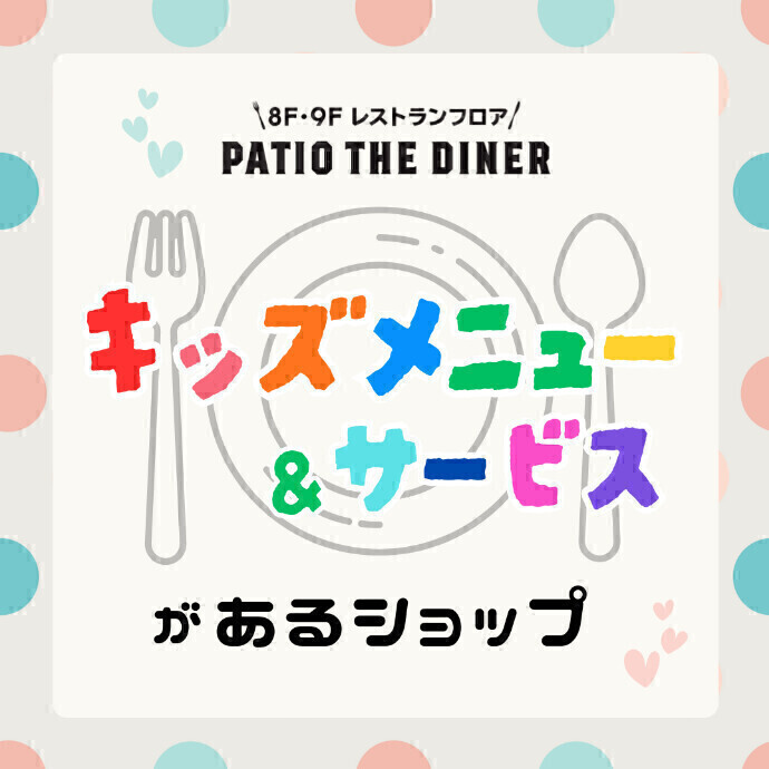 8・9Fレストランフロア「PATIO THE DINER」の各ショップでは、キッズメニューやサービスをご用意しております🍴