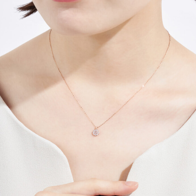 センターのモルガナイトを包み込むようにキュービックジルコニアがセッティングされた華やかなデザインのネックレス。