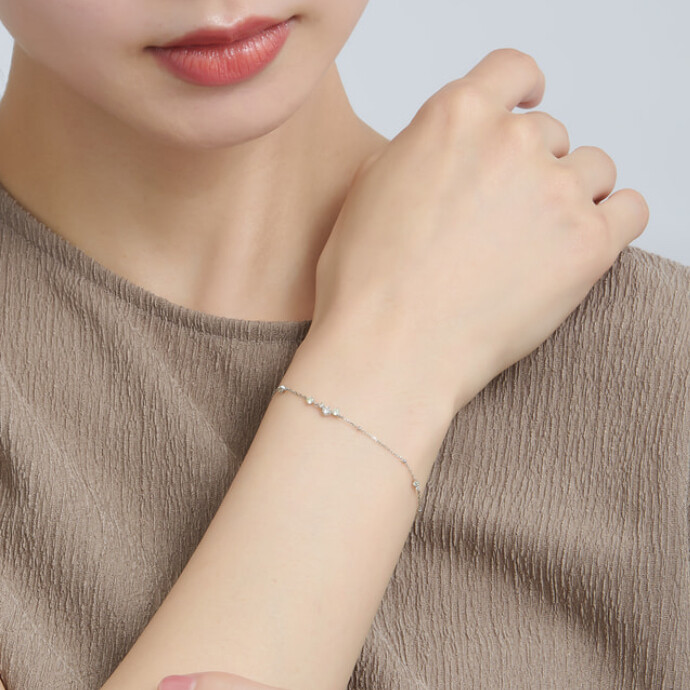 プラチナ素材の凛とした白い輝きは、ダイヤモンドの透明感を引き立て、シックで大人っぽい印象を手元に与えてくれます。