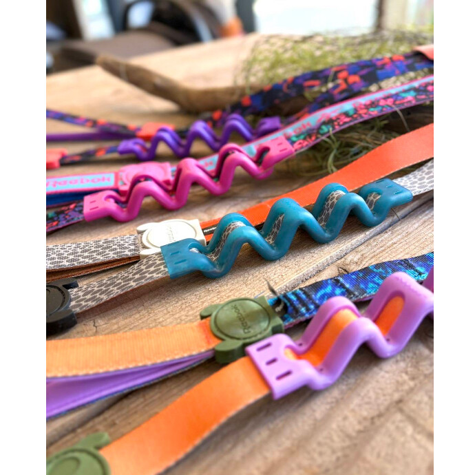 リード本体に装備されたポリエチレンスプリングが伸び縮みすることにより、愛犬の引っ張り衝撃を吸収。