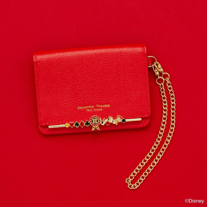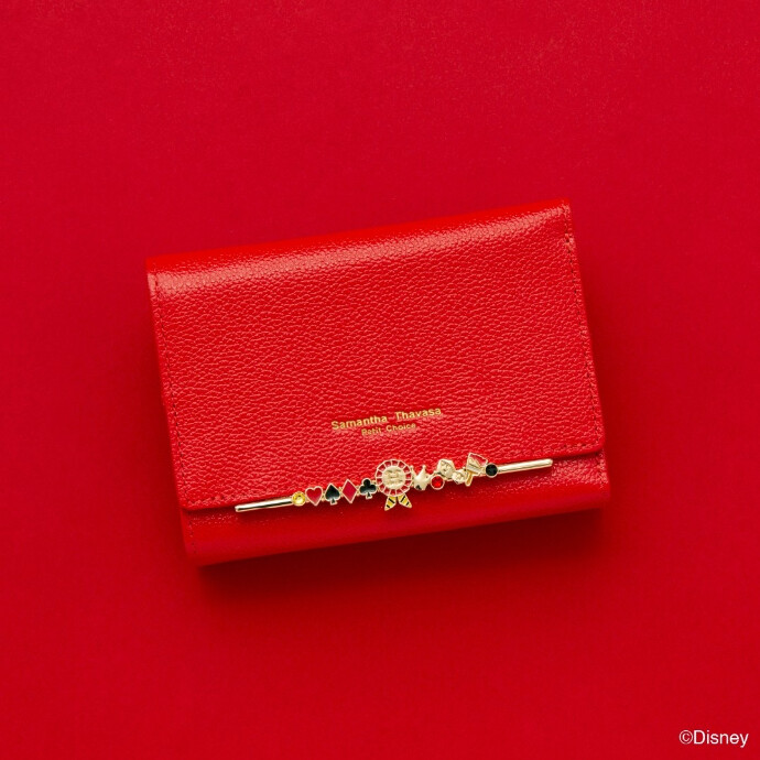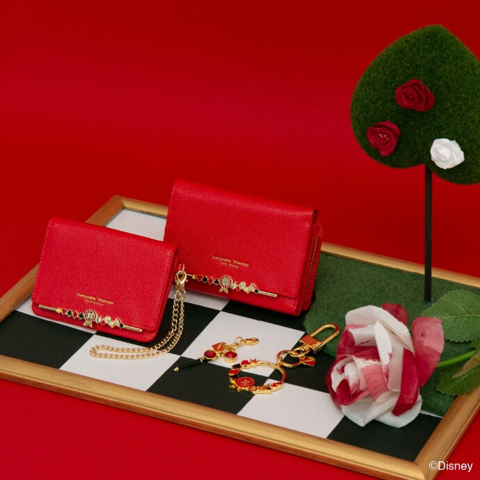 ハートの女王の厳格な精神に基づいた法律に従って生活をしている寮。「ハーツラビュル寮」の寮服からイメージされたカラーに、トランプや薔薇、女王の冠、ペンキの刷毛などのモチーフを施した財布、パスケース、キーリングがラインナップ。