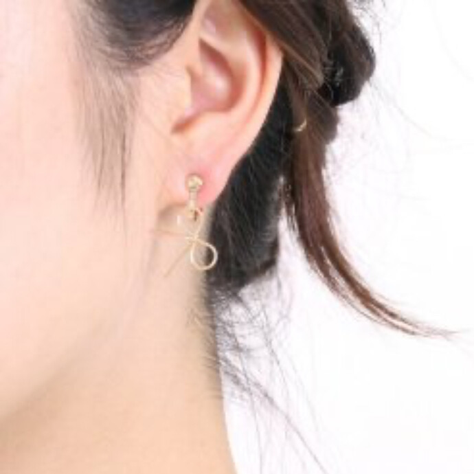シンプルで華奢なワイヤーで形成された、リボンモチーフのイヤリング🩷