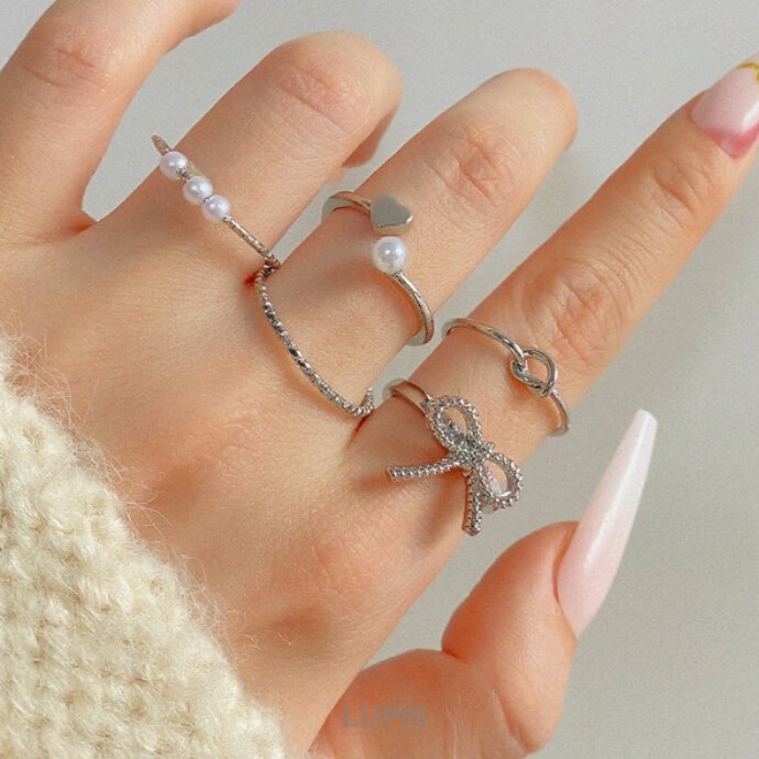 リボン・ハート・結び目・パールの女性らしいデザインのリングセット🎀