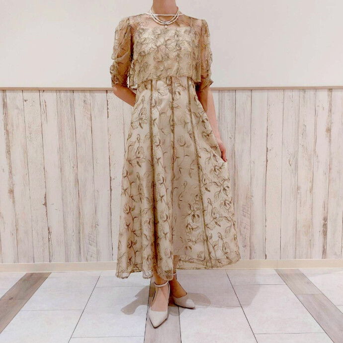 サイズ展開もM・Lとあり肩紐アジャスターがついていて、ドレスの丈の長さを調節できるので小柄さんから高身長の方まで幅広くお買い上げいただいております。