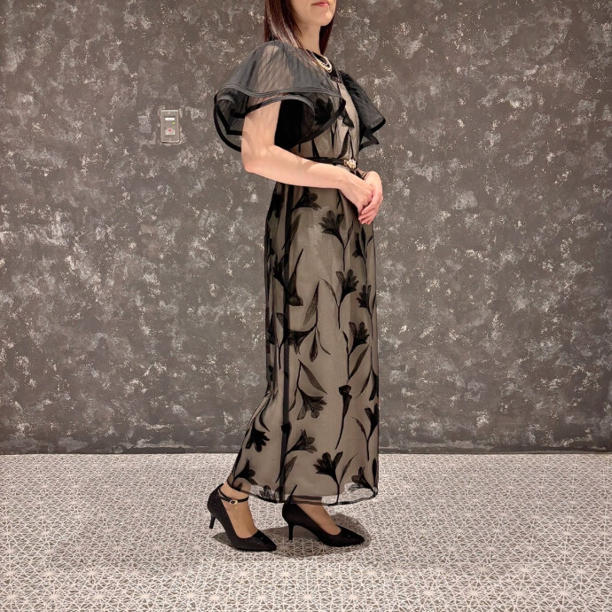 ぷっくりとしたフロッキーのユリの様な花が散りばめられていて、上質で洗練された雰囲気を感じさせてくれる一着です。