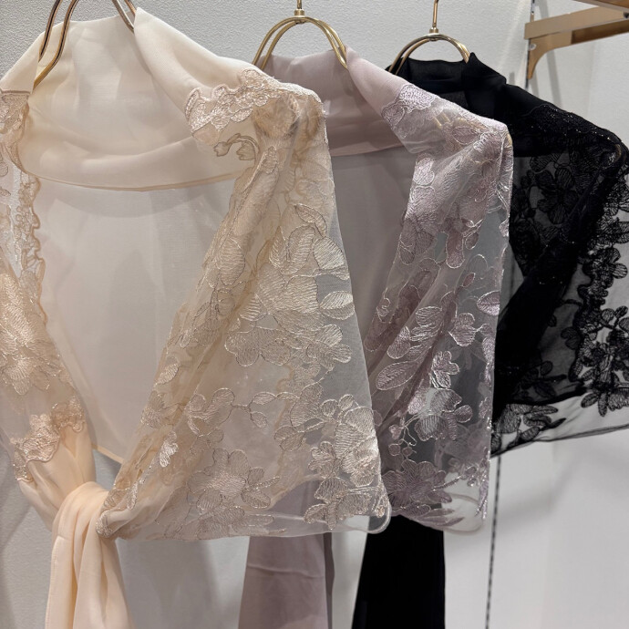 刺繍部分には透け感があるので、ドレスなどのカラーを隠すことなく合わせていただけます