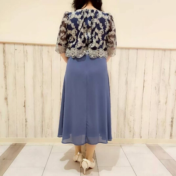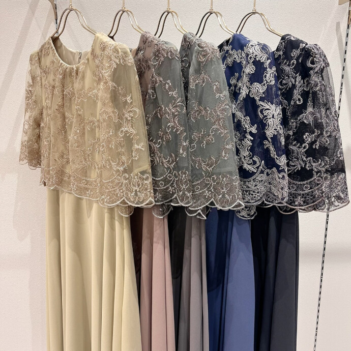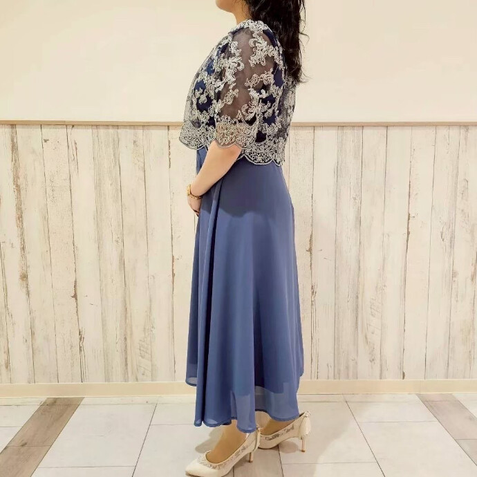 ふんわりとしたレースのトップスが可愛いドレスです👗袖口やウェストがスカラプにカットされていて貝殻の様なデザインがフェミニンで女性らしいです✨