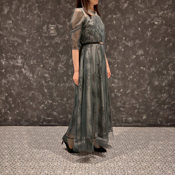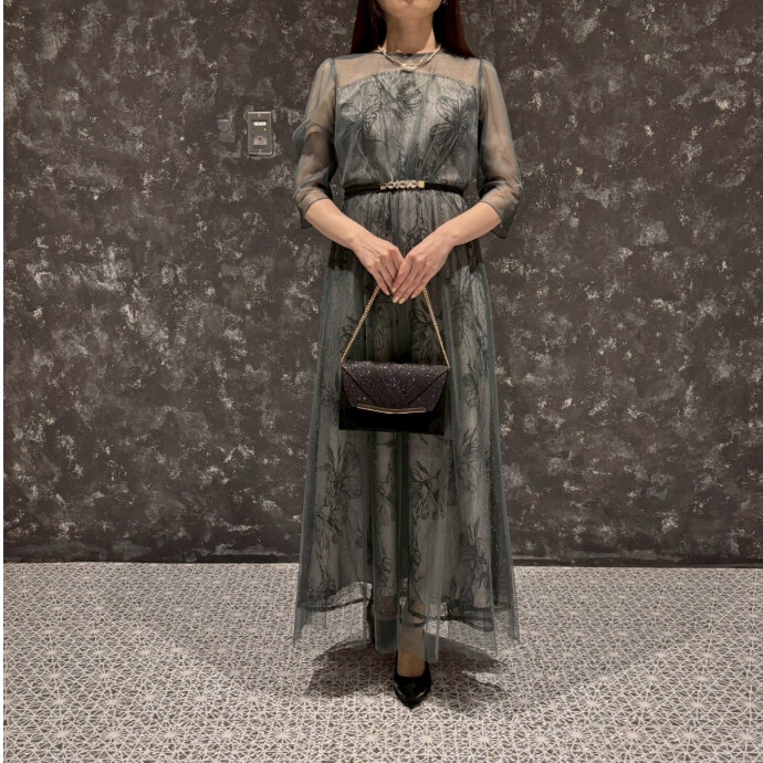 デコルテの透け感が女性らしく、袖丈や丈感が長めで大人っぽい印象にしてくれますよ👗