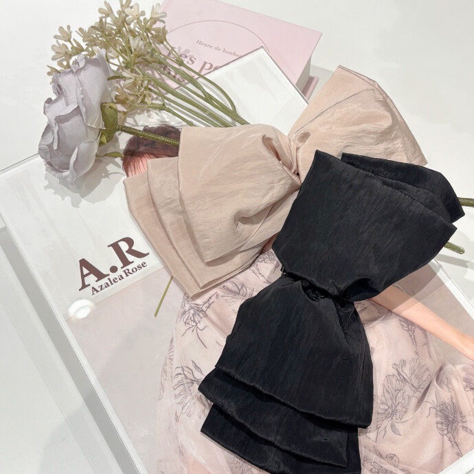 大きめのリボンを合わせることで、女性らしいガーリーさやレトロ感、また華やかな雰囲気を演出してくれます