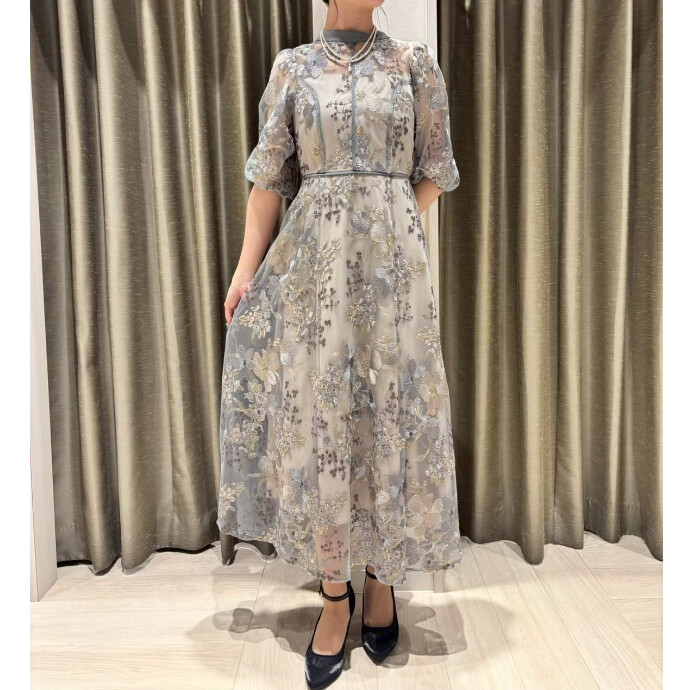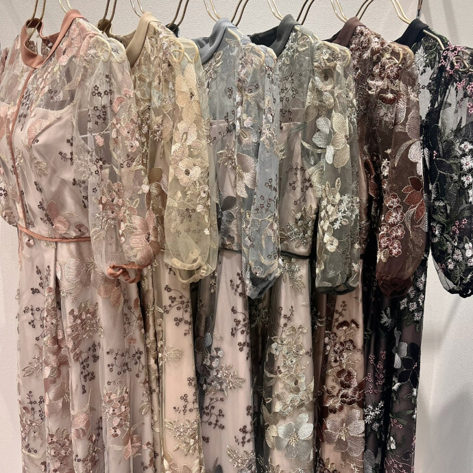 ドレスと同系色の刺繍にブラウンの糸が使われており、派手になり過ぎず幅広いお客様にご好評いただいています。