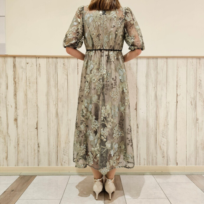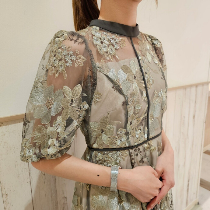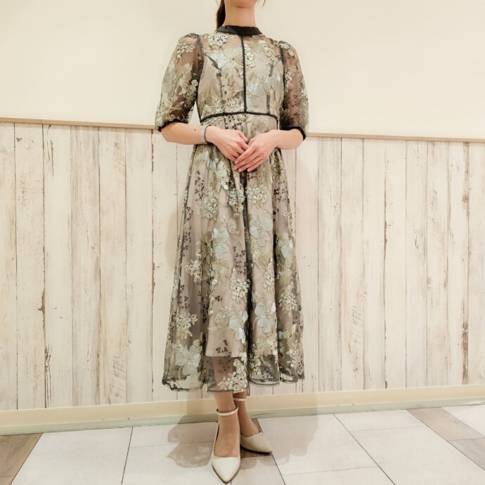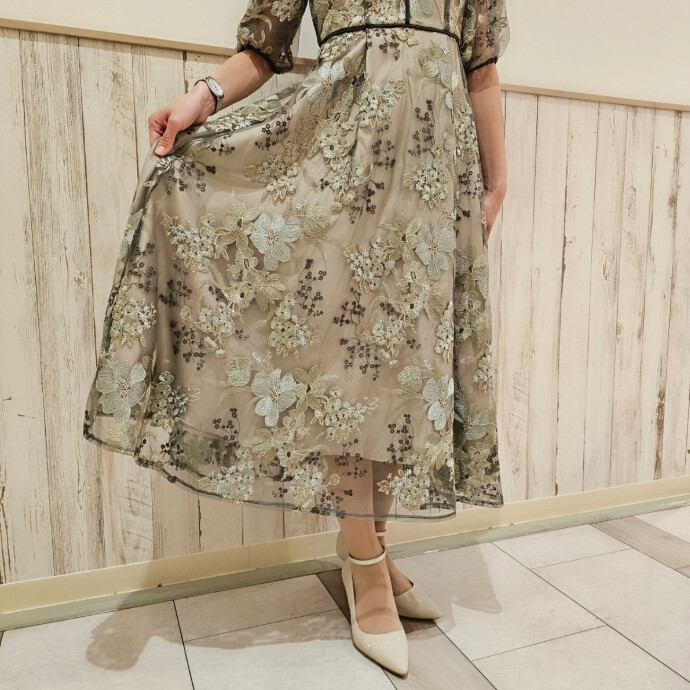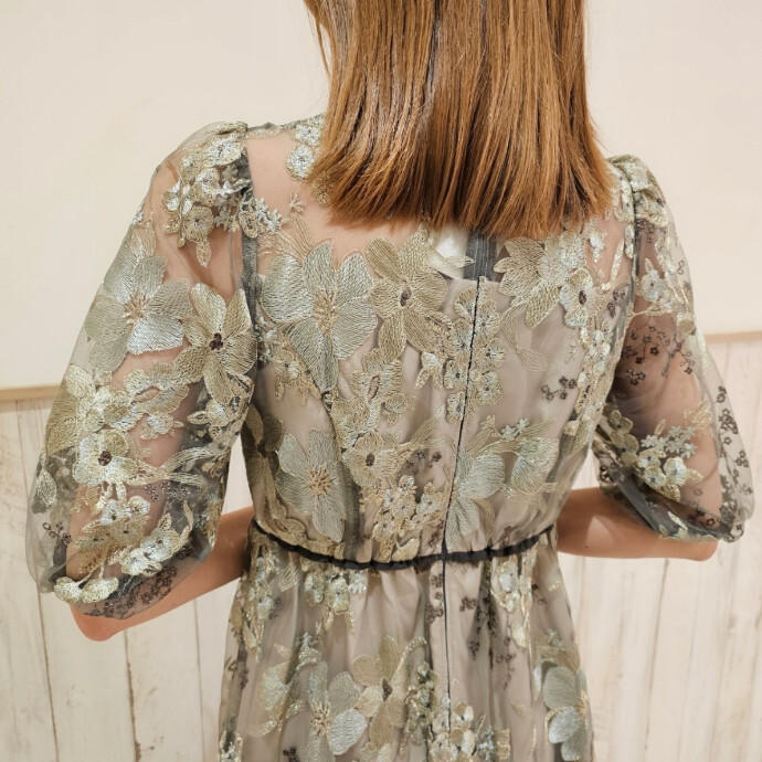 立体感のある花柄刺繍が全体的にあしらわれた豪華なドレス💐