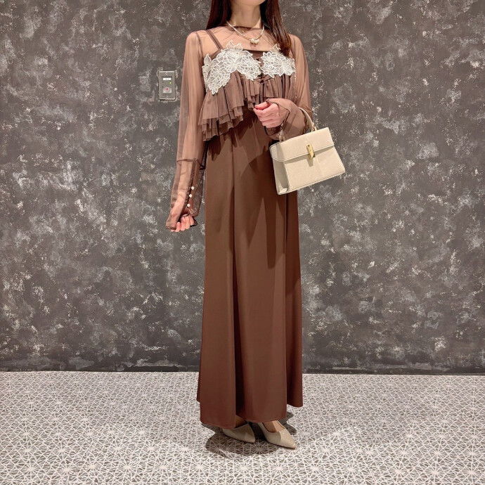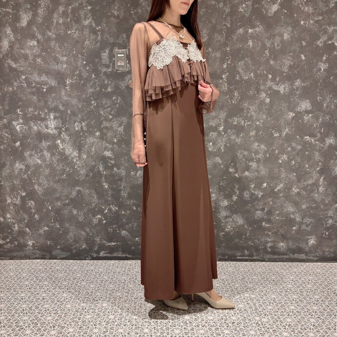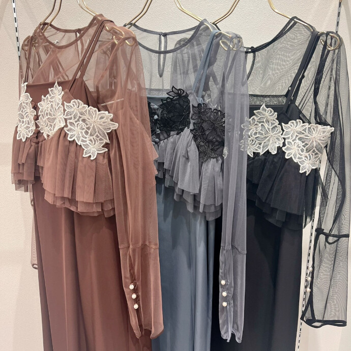 ビスチェ、長袖ブラウス、キャミワンピースの3点セットで着方のアレンジを楽しんでいただけるドレスです。