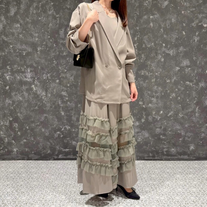 ジャケットはゆったりとしたサイズ感で、メンズライクな雰囲気がトレンド感を出してくれますよ🍂