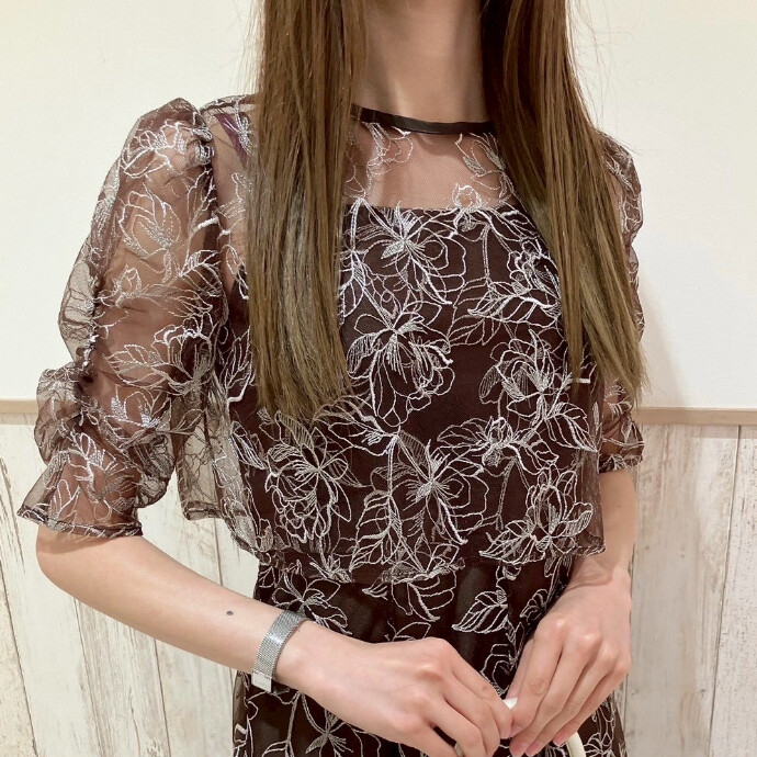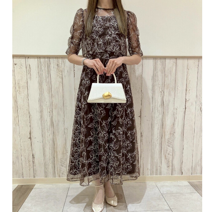 幾何学柄の刺繍を全体にあしらった華やかなドレス👗