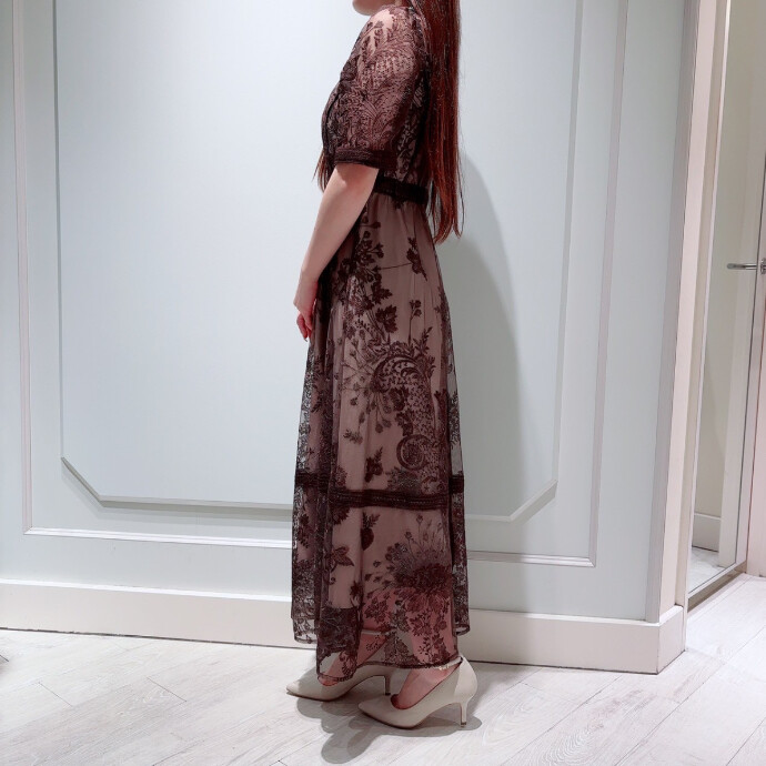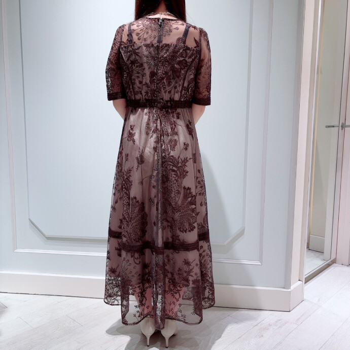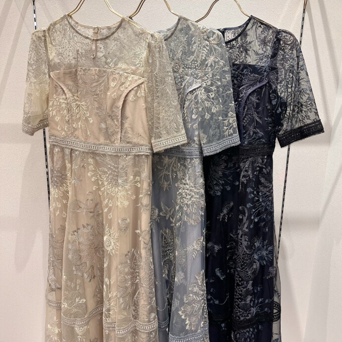 繊細なラダーステッチを全体にあしらった上品なドレス👗💐