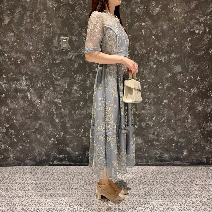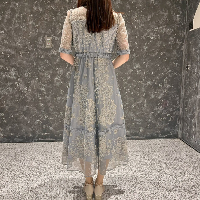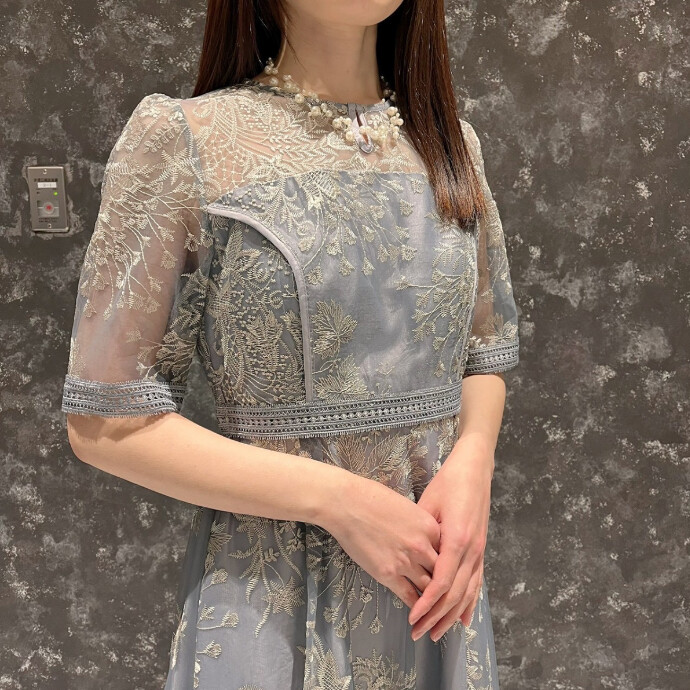カラフルなラダーステッチを全体にあしらった華やかなドレス👗💐