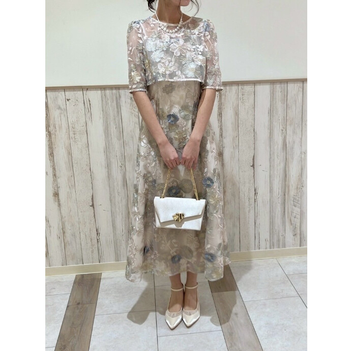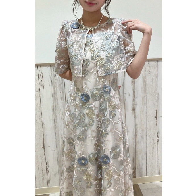 立体感のある刺繍がポイントであしらわれた目を引くドレス🌼・:*