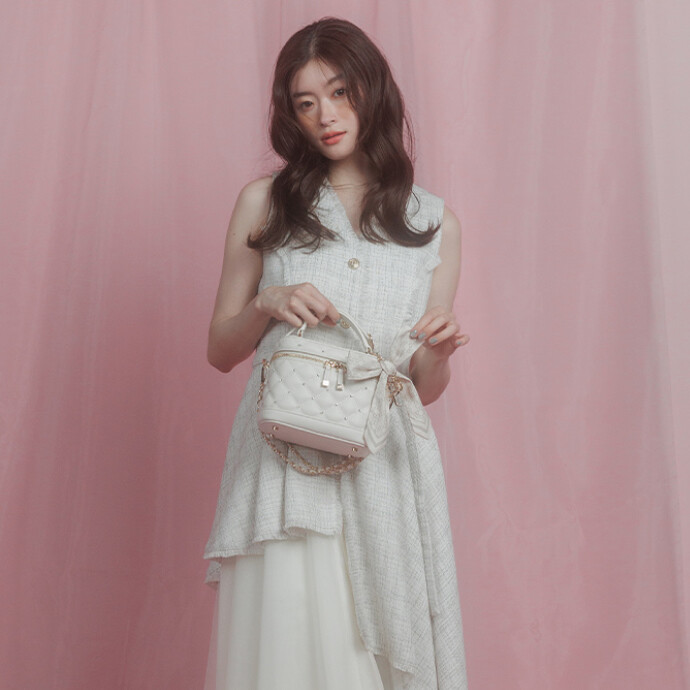 2WAY リボンチャームキルティングバニティバッグ(品番:FB36019)