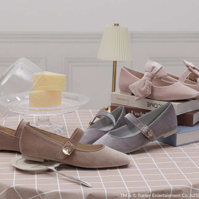 トムとジェリーの世界観を落とし込んだリボンフラットパンプス。