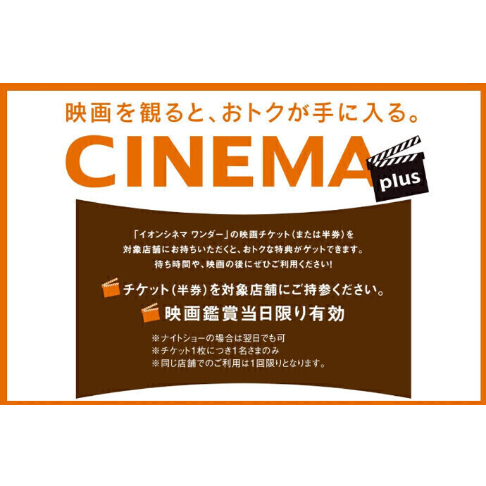 当日ご鑑賞チケット、もしくはe席リザーブ完了通知メール画面をご呈示いただくと、おトクな特典がゲットできます。