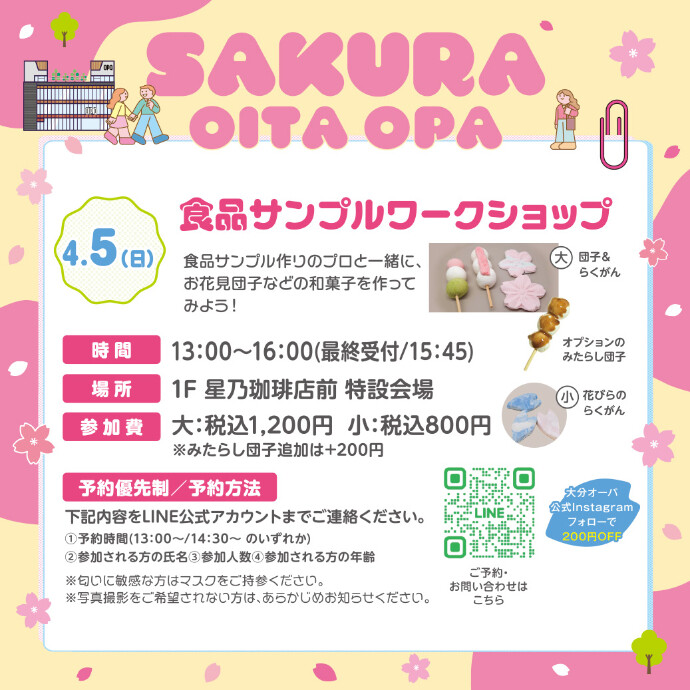 大分オーパのInstagram(@oita.opa)をフォローしていただくと、200円OFF!
