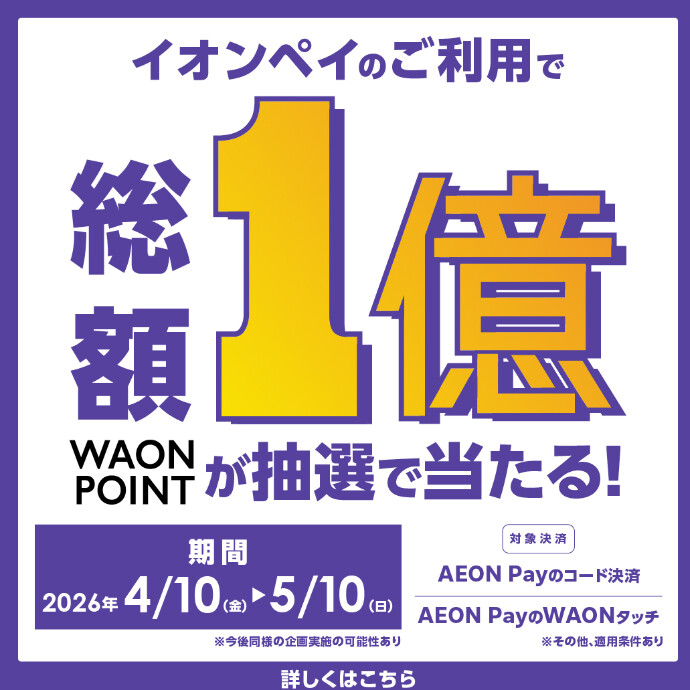 ★イオンペイのご利用で総額1億WAON POINTが抽選で当たる!★