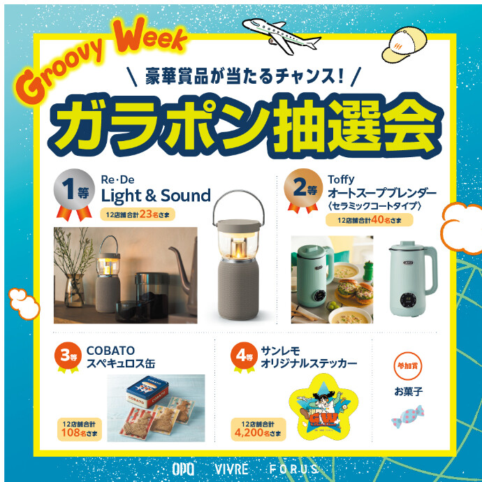 5月2日(土)~5月6日(水休)の期間中、大分オーパでは「Groovy Weekガラポン抽選会」を開催!