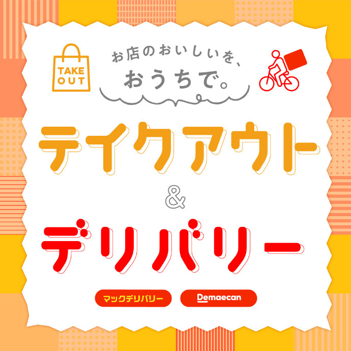 ※出前館・Uber Eatsデリバリーご利用の際は、専用サイトまたはアプリをインストールください。