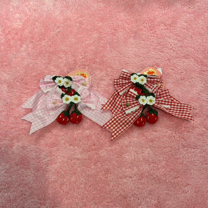 ゆらゆらいちごのHappy Berry presentギンガムリボンクリップ