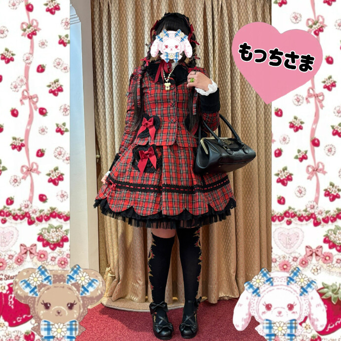 赤×黒タータンチェックのセットアップできてくれたもっちさま✨
