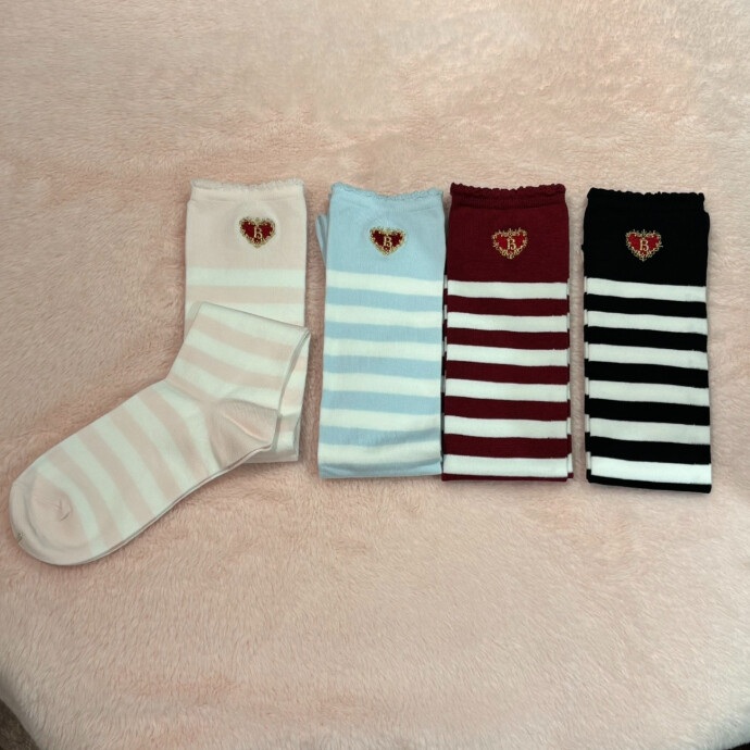 プリンセスドロップ刺繍ボーダーオーバーニーソックス