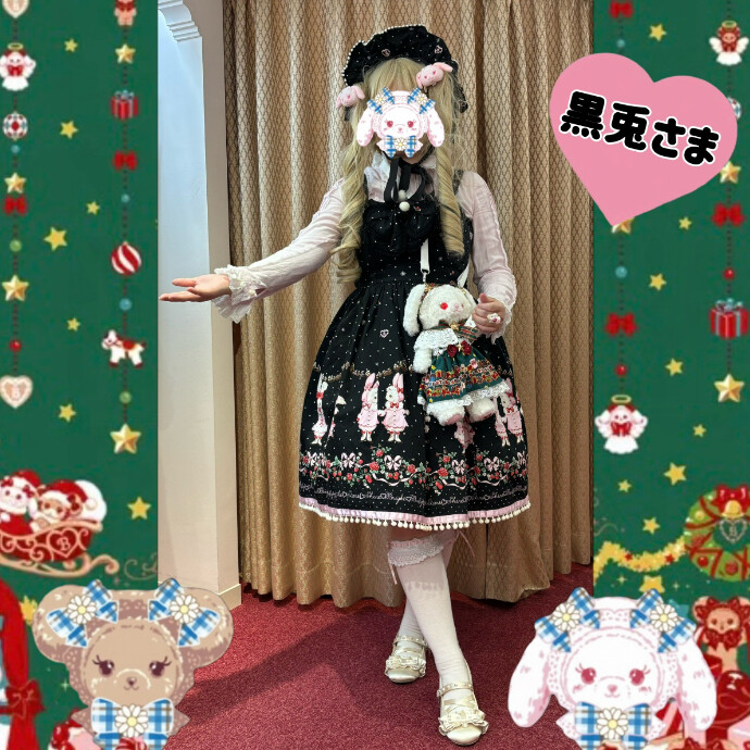 みるくちゃん柄で黒×ピンクコーデの黒兎さま🖤