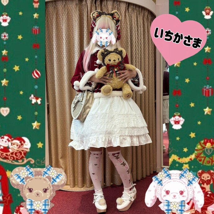 赤×白コーデにくまくみゃちゃんがいっぱいのいちかさま🧸