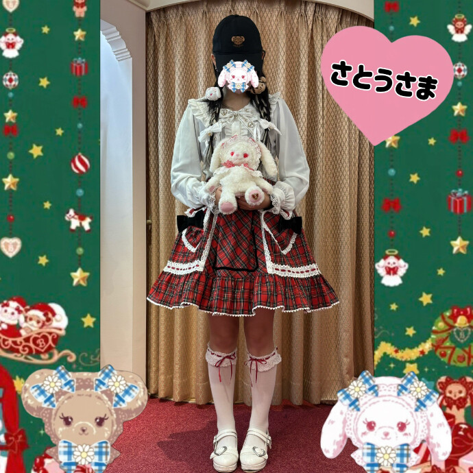 赤チェックスカートとうさくみゃ、くまくみゃみんなでクリスマスお祝いしました♡