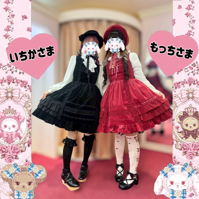 ローズピンク×黒の別珍レースフリルジャンパースカートでふたごコーデのいちかさまともっちさま⛄