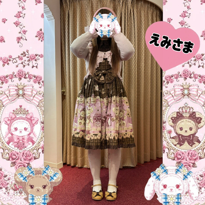 くまちゃんのスウィートチョコレート柄でバレンタイン先取りコーデのえみさま💓