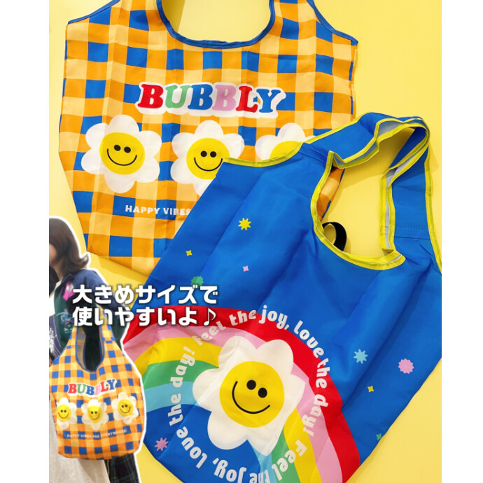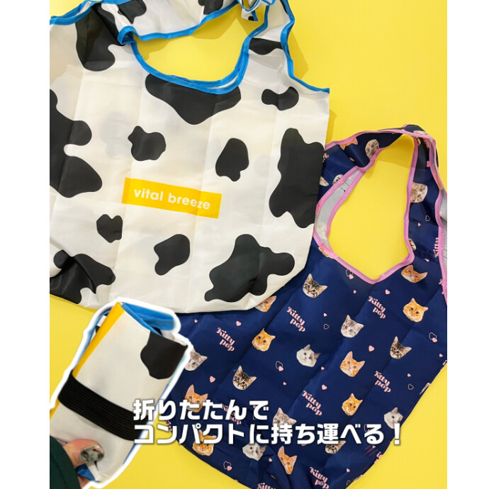 使うのが楽しみになる🎶 ポップなデザインの「エコバッグ」が登場❕ 大きめサイズでたくさん入る🛍️🧡 折りたたんでコンパクトに持ち運べるよ◎ もちろん390円(税込429円)🌈 是非店頭にてご覧ください😊