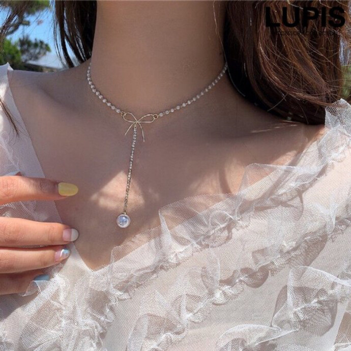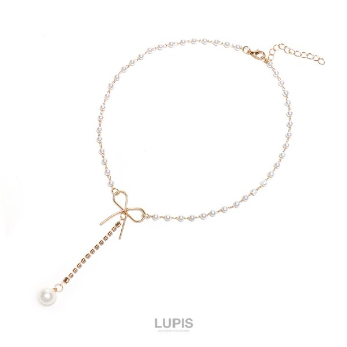 Y字シルエットが印象的なリボンモチーフのパールネックレス᧔o᧓