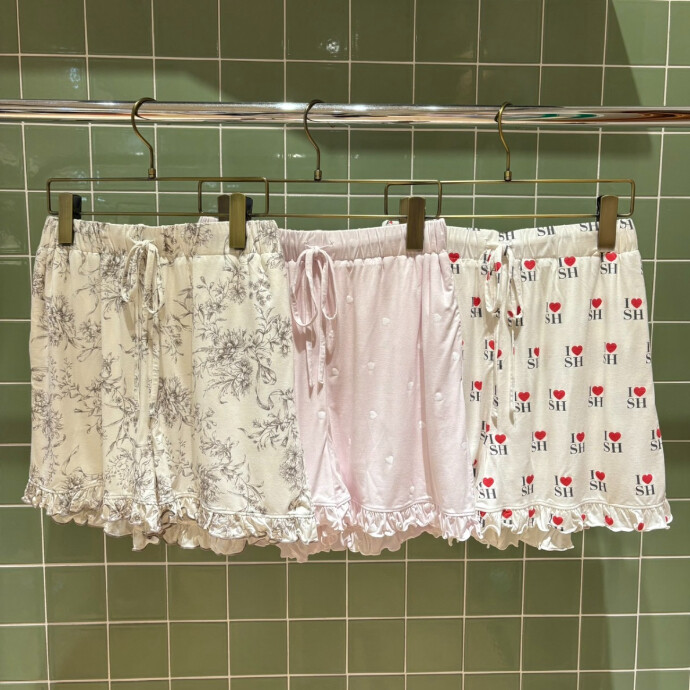上記の商品すべて色柄はロゴプリント入りのアイボリー・大人っぽいフラワー柄のライトベージュ・ドットでハート柄をプリントしたピンクの3色展開です😌