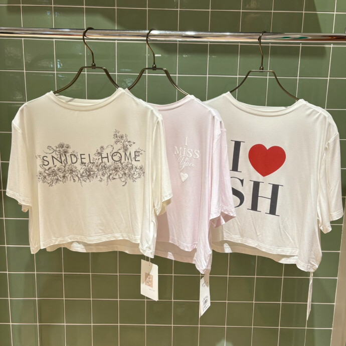 色柄はロゴプリント入りのアイボリー・大人っぽいフラワー柄&ロゴプリントのライトベージュ・発泡プリントでハートを表現したピンクの3色展開です💕